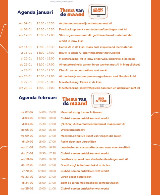 Heb je vragen over het gebruik van AI in jouw onderwijs en wil je die met echte mensen bespreken? Heb je een nieuwe app geprobeerd, en loop je nu even vast? Precies daarvoor is Club AI. Geen gedoe, maar een veilige plek waar je elke week je vraag kwijt kunt. Want eerlijk is eerlijk: iedereen doet maar wat met AI. En dat is oké. Maar samen leren we sneller wat werkt.